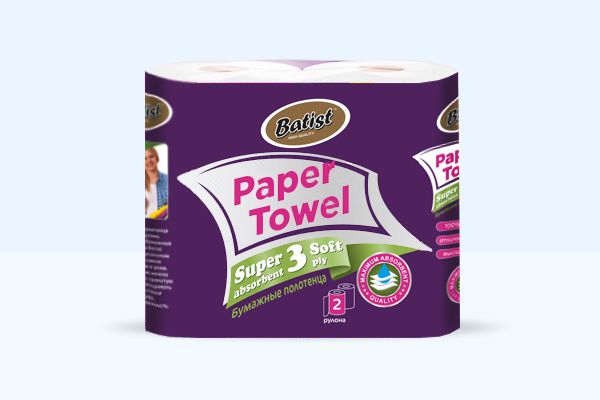 Бумажные полотенца «BATIST» 3 слоя 2 рулона (12м), белые