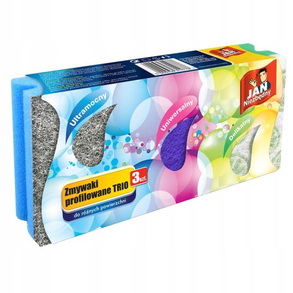 JAN Губка кухонная TRIO профилированная универсальная 3шт