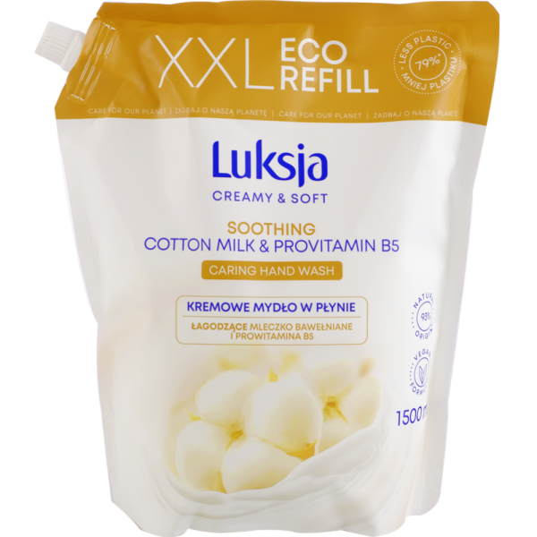 LUKSJA Мыло жидкое COTTON MILK & PROVITAMIN B5 1500мл (запаска)