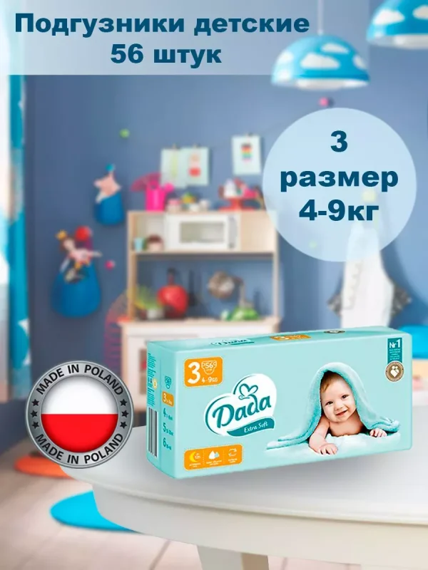 DADA детские подгузники EXTRA SOFT 3 MIDI 56 шт 4-9 кг