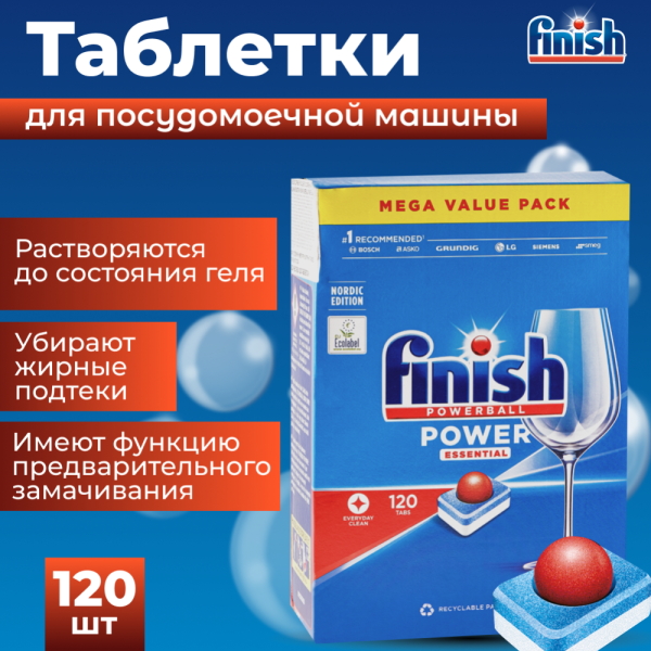 Finish Powerball/All in 1 Power Essential Таблетки для посудомоечных машин 120шт